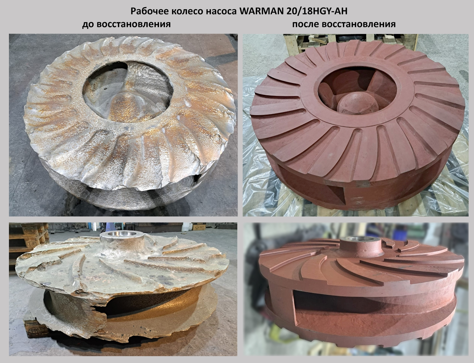 Восстанавливаем и защищаем от абразивного, кавитационного и коррозионного износа детали проточной части шламовых, пенных и водяных насосов, применяемых для транспортировки материалов в жидкой среде. Восстановление производится по технологии с применение износостойкого композитно-полимерного материала Магналит.